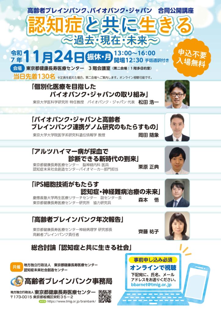 [イベント案内] 高齢者ブレインバンク、バイオバンク・ジャパン合同公開講座 「認知症と共に生きる ~過去・現在・未来~」(11/24)